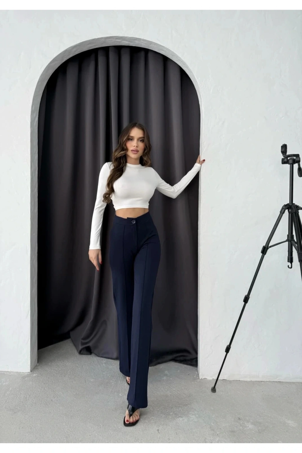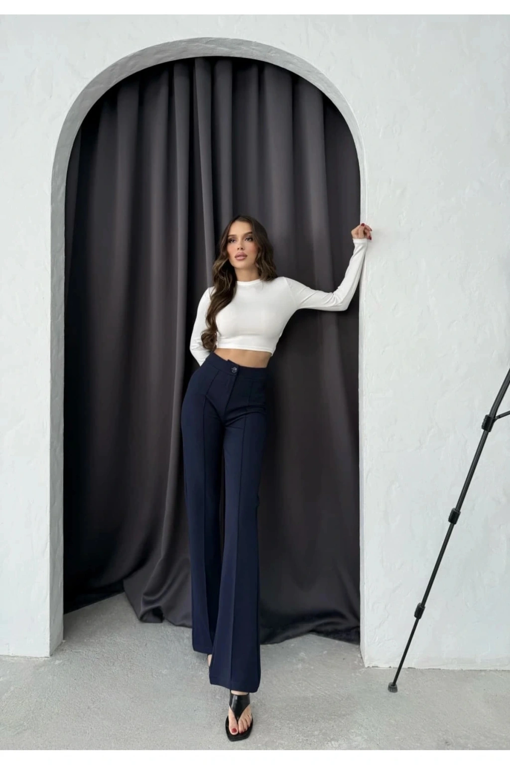 Şıklığı ve rahatlığı bir arada sunan Düğmeli Palazzo pantolon ile tarzınızı konuşturun. Yüksek bel tasarımıyla vücudu saran bu pantolon, zarif lacivert rengiyle her kombinle uyum sağlar. Geniş paçası sayesinde hareket özgürlüğü sunarken, belindeki düğme detaylarıyla da göz alıcı bir görünüm katmaktadır.