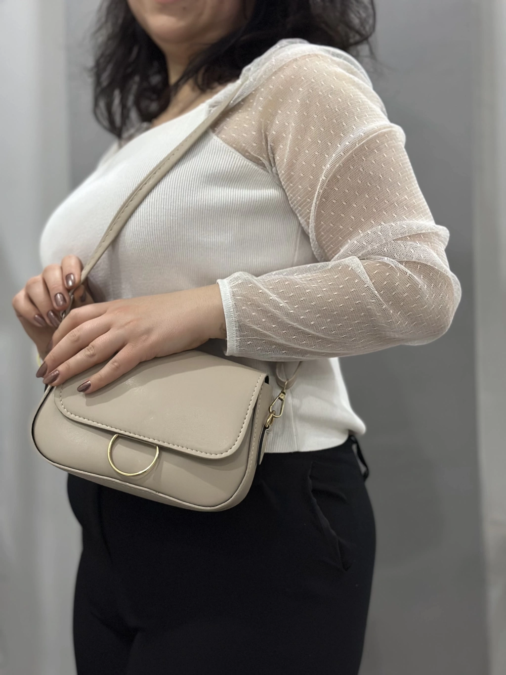 Bej cilt mossi çanta şıklığı ve kullanışlılığı bir arada sunar.
