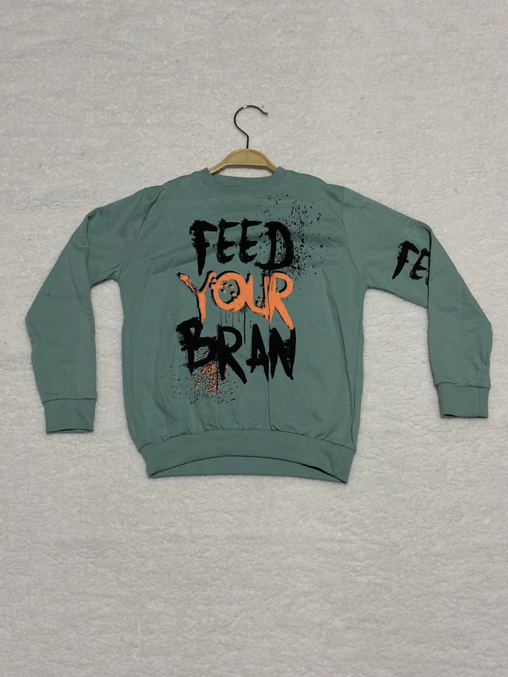 8 yaş Bisiklet yaka siyah turuncu yazı baskılı sweat erkek çocuk mint