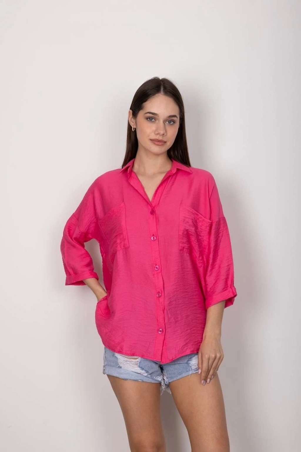 CEPLİ SALAŞ GÖMLEK T1010, şıklık ve rahatlığı bir arada sunan bir kadın giyim ürünüdür.