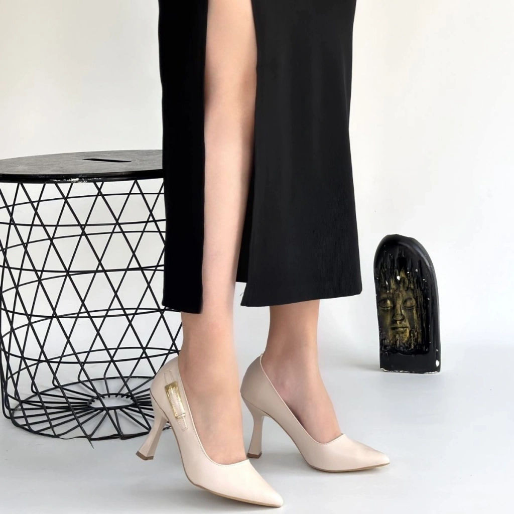 • Cerin Bej Cilt Topuklu Ayakkabı