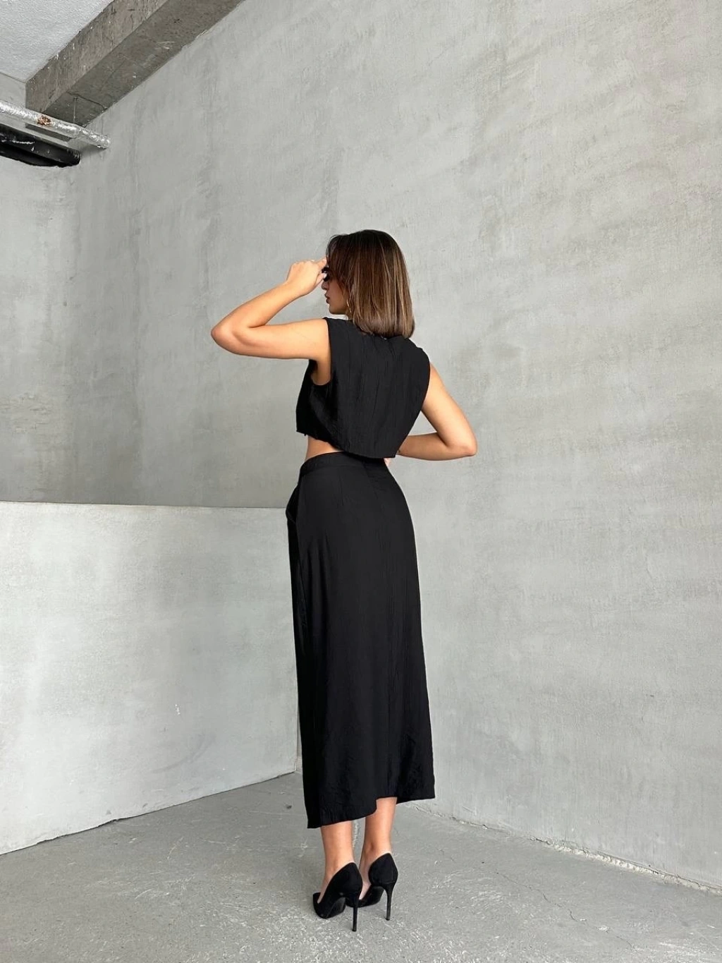 • Eteği beli saran kesimiyle şık bir görünüm sunar.