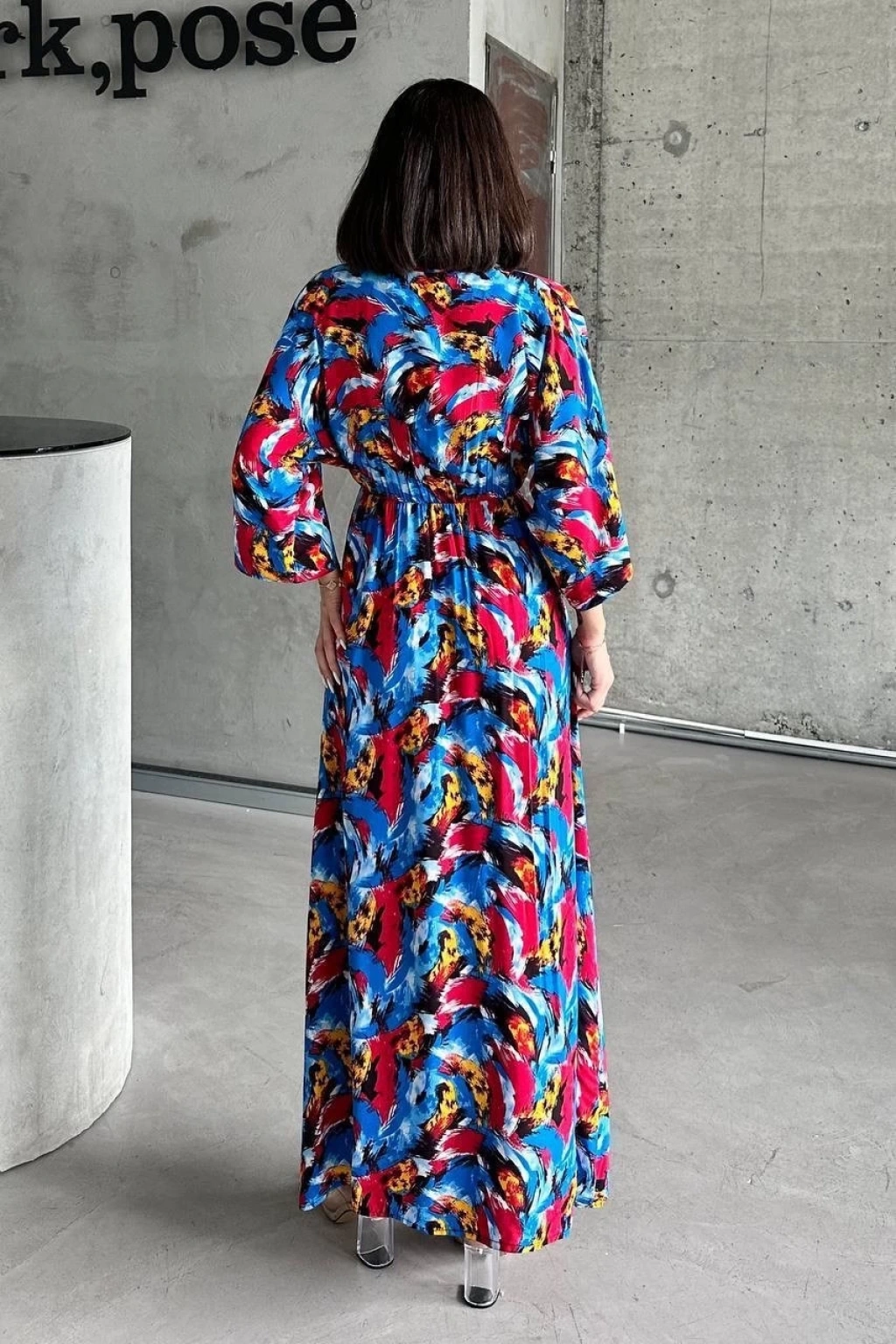 Dokuma Baskılı Yarasa Kol Elbise S8124 ile tarzınızı ön plana çıkarın! Modern ve şık tasarımıyla dikkat çeken bu elbise, gardırobunuzun vazgeçilmezi olmaya aday.