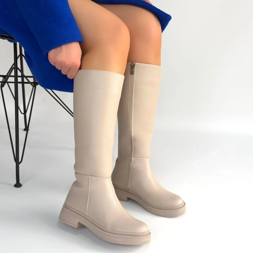 Detay: Topuklu Yandan Fermuarlı Diz Altı Çizme