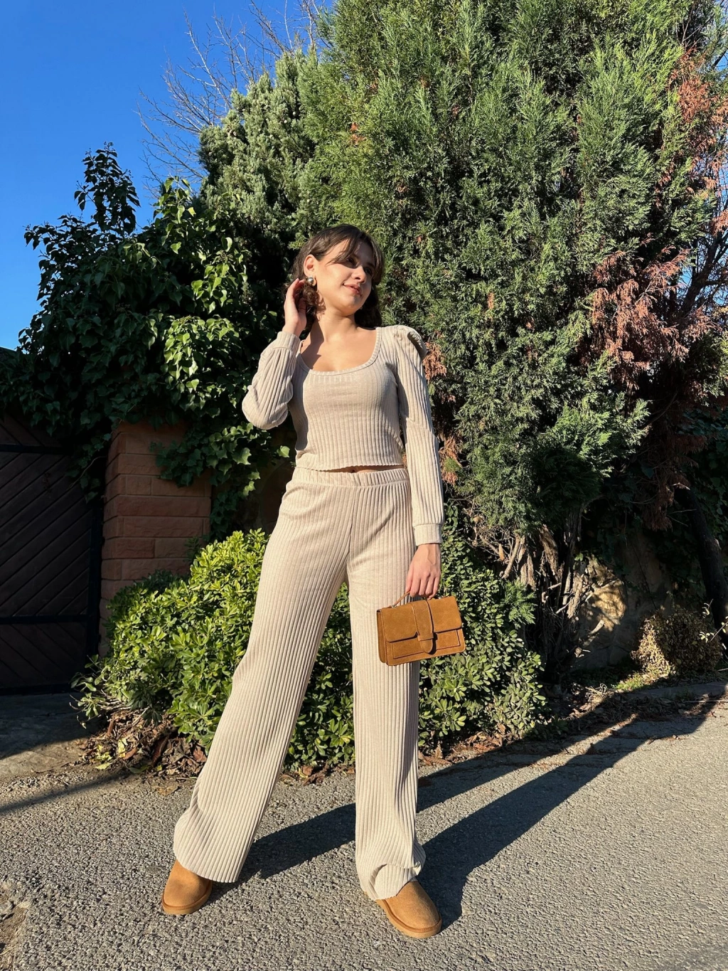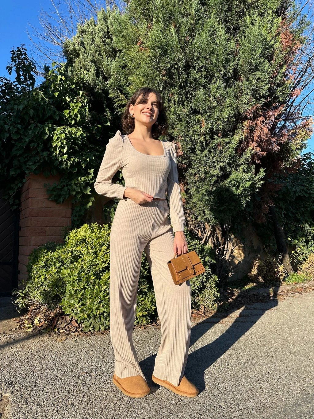 Fitilli prenses kol alt üst takım bej ile tarzınızı yansıtın, şıklığınızı ön plana çıkarın!