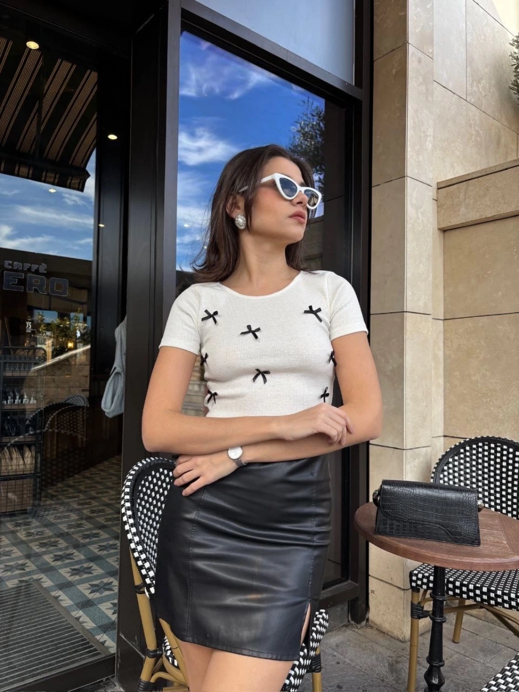 Bağcıklı fiyonk detayıyla feminen bir görünüm kazandırır.