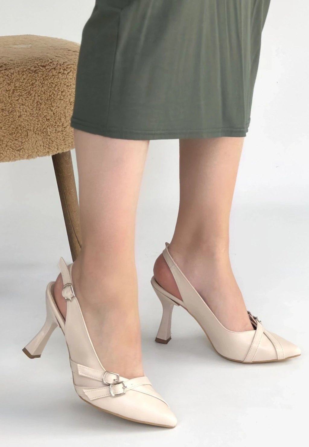 • Jedda Bej Cilt Topuklu Ayakkabı