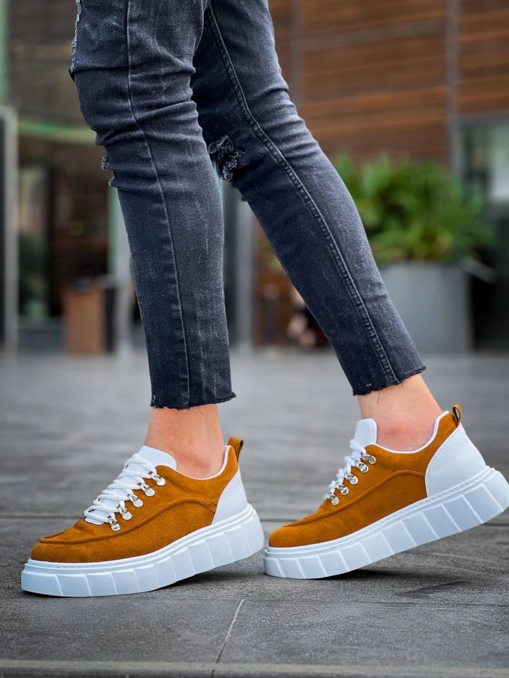 KB-X10 Kuback Taba Süet Beyaz Yüksek Taban Günlük Spor Ayakkabı