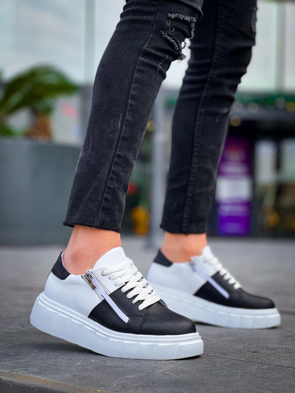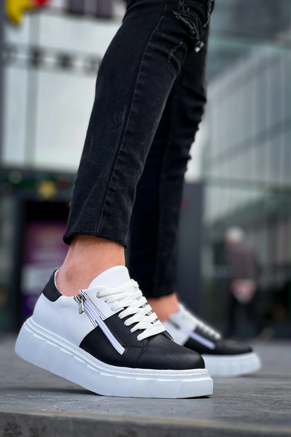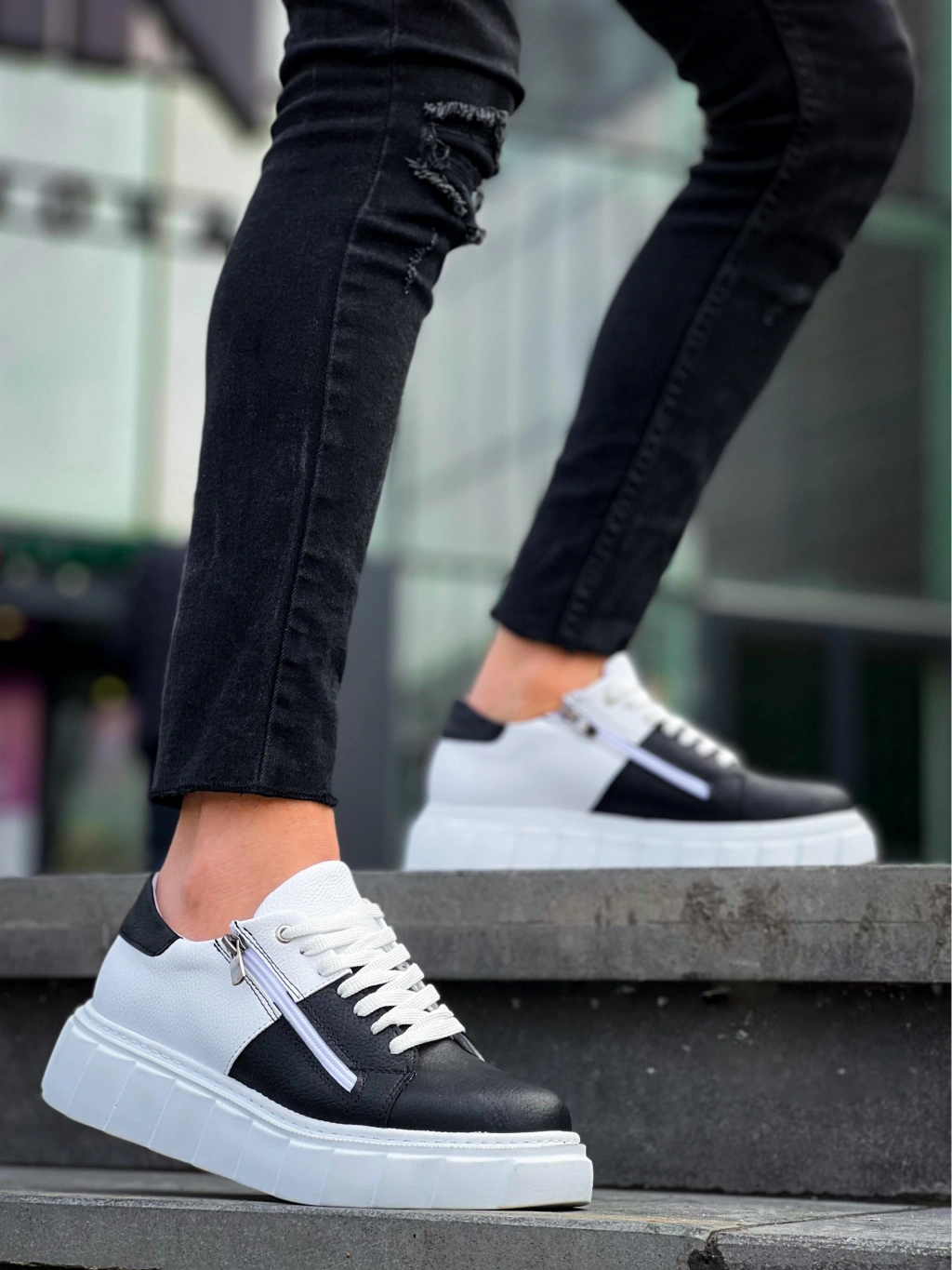 KB-X155 Kuback Siyah Cilt Beyaz Cilt Detaylı Beyaz Yüksek Taban Günlük Spor Ayakkabı