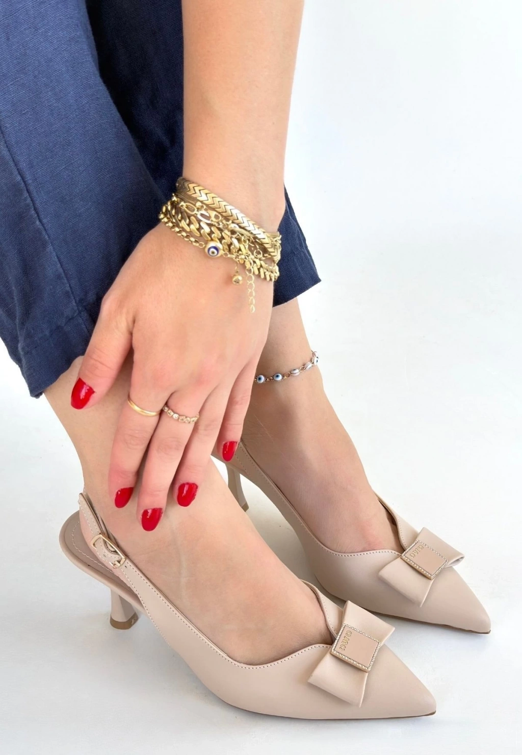 • Leyya Bej Cilt Topuklu Ayakkabı