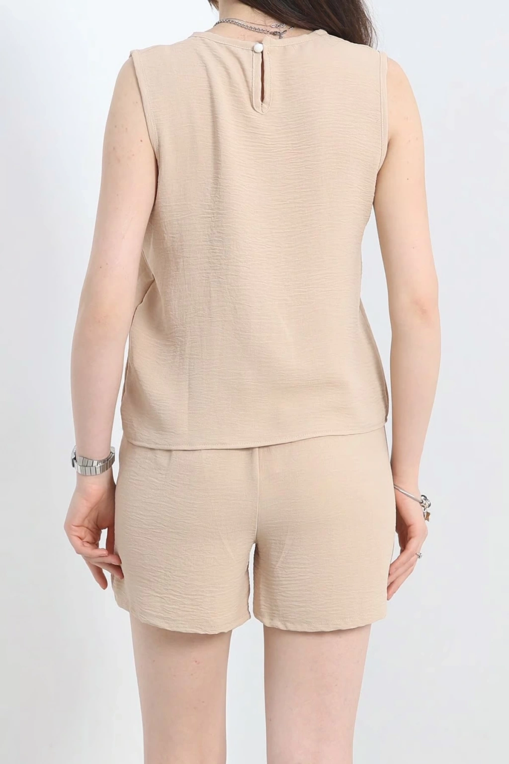 Şortlu Ayrobin takım bej, gardırobunuzun vazgeçilmez parçalarından biri olmaya aday. Şimdi hemen sepetinize ekleyin ve tarzınızı konuşturun!