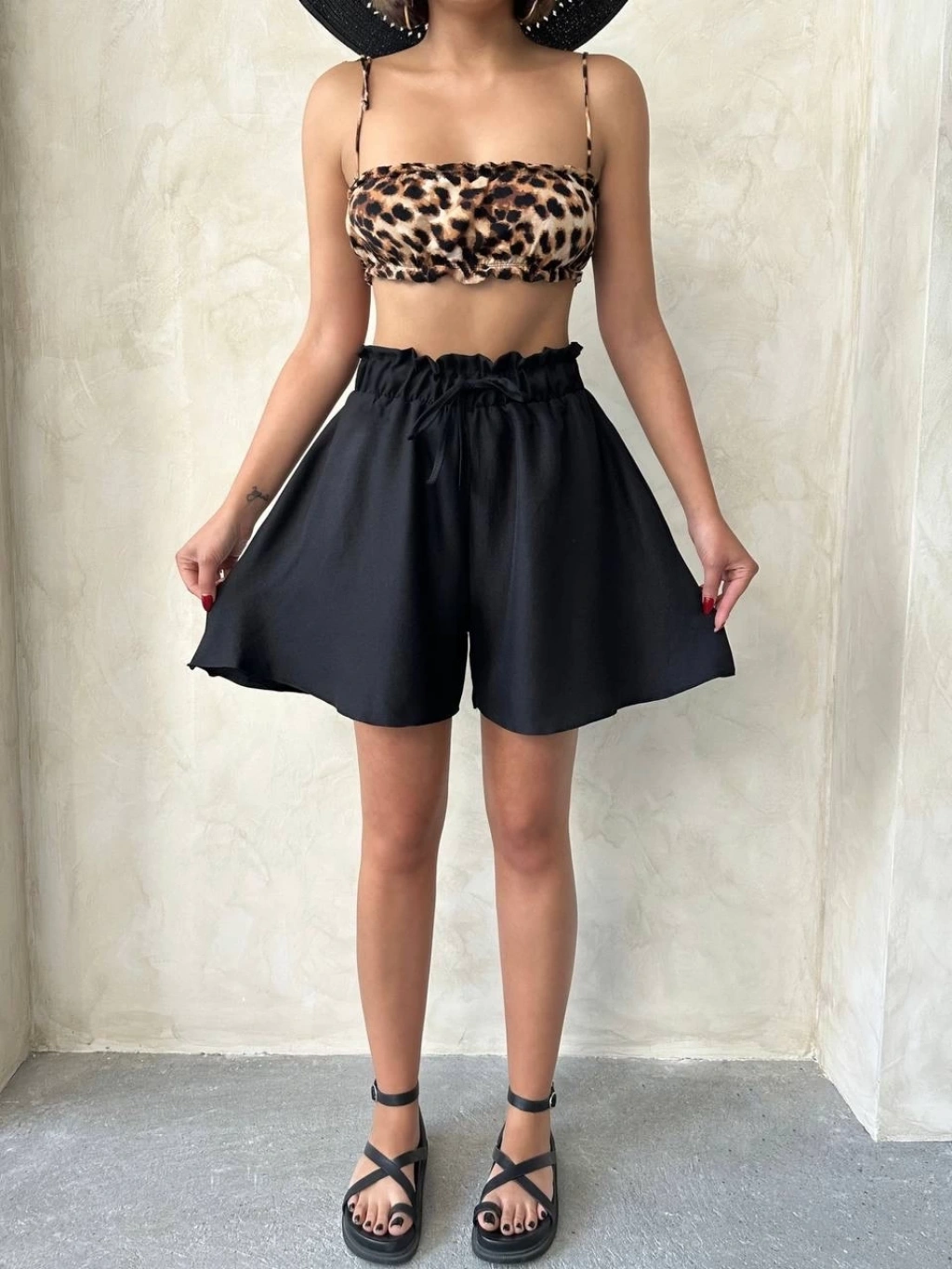 Omuz kısmında yer alan volan detayı ise şortu farklı kılarak tarzını ön plana çıkarır.