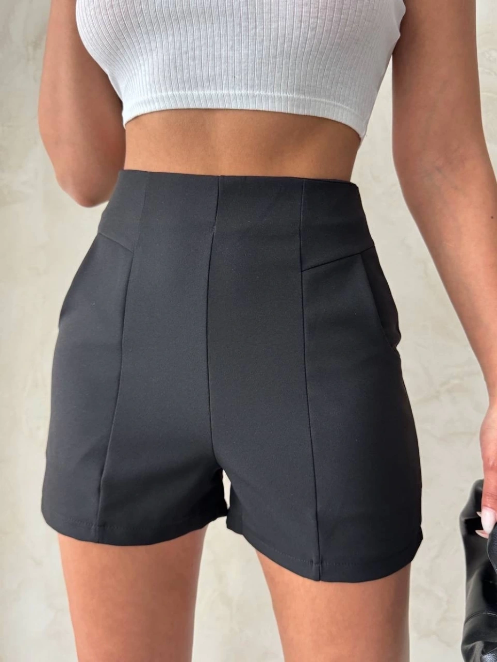 Yüksek bel parçalı double kumaş şort, hem şık hem de rahat bir seçenektir.