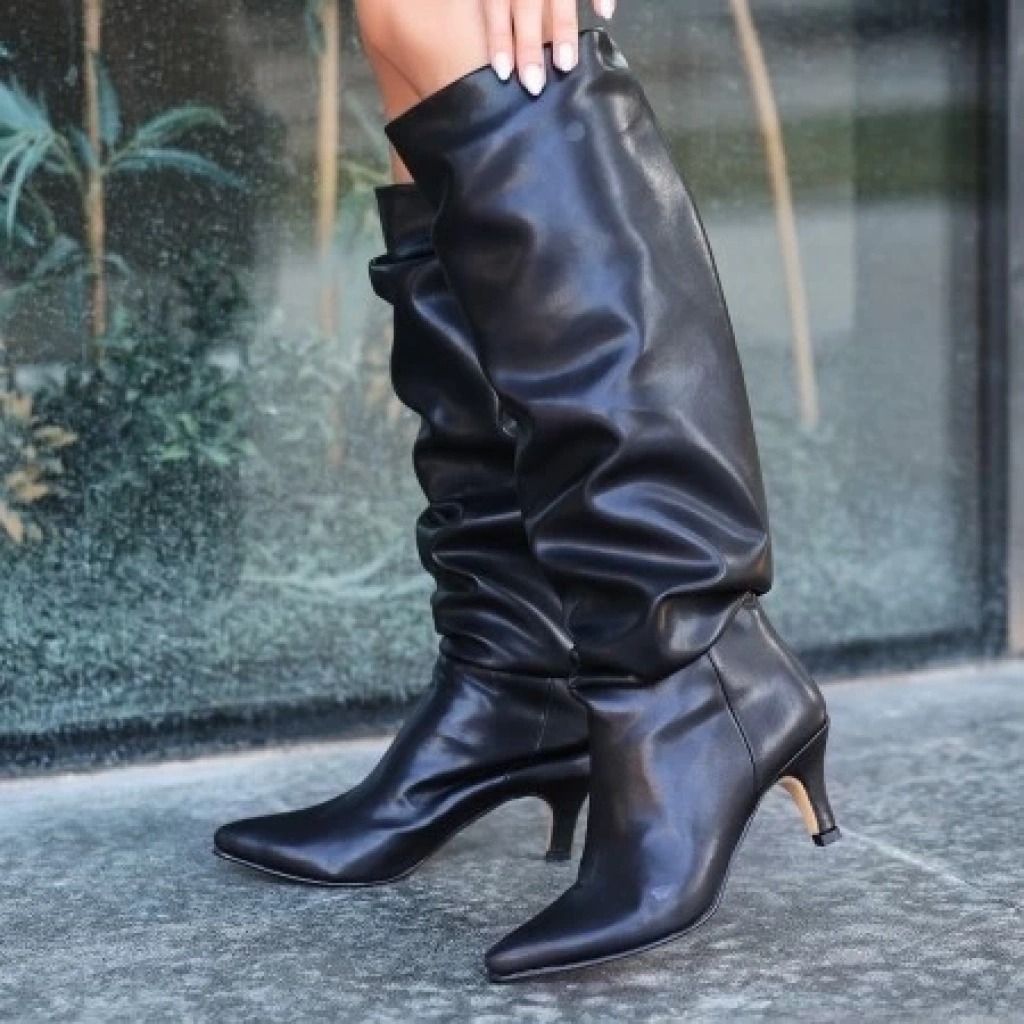 Zelya Siyah Cilt Topuklu Çizme