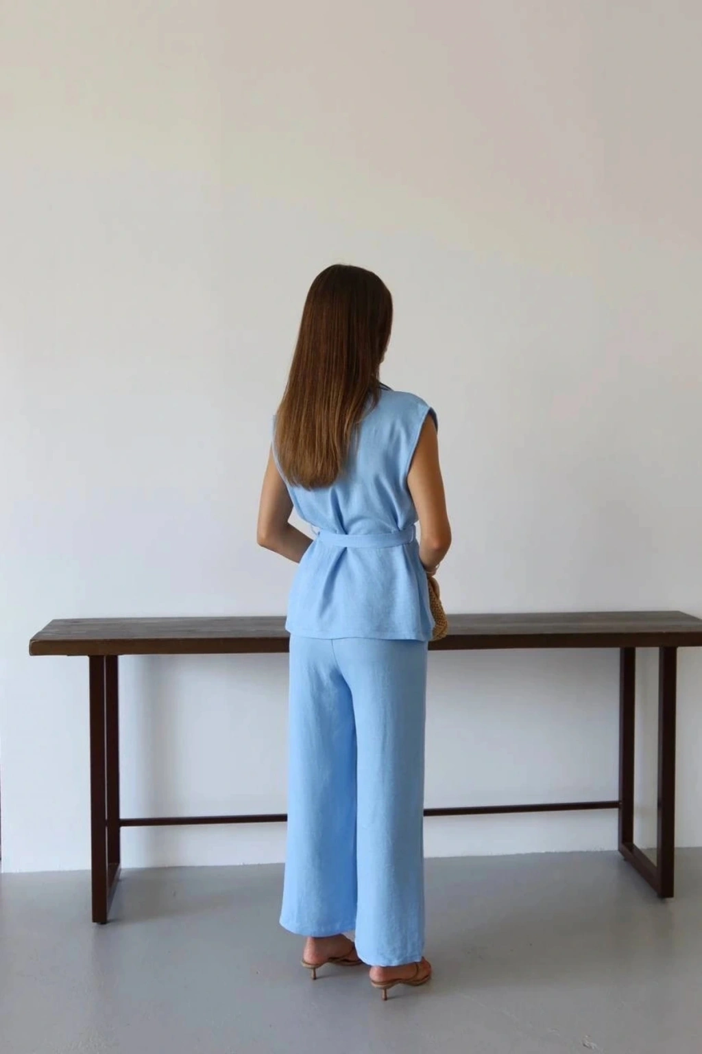 Şıklığı ve konforu bir arada arayan kadınların tercihi olan keten yelek pantolon takım mavi PT, gardırobunuzun vazgeçilmezi olmaya aday!